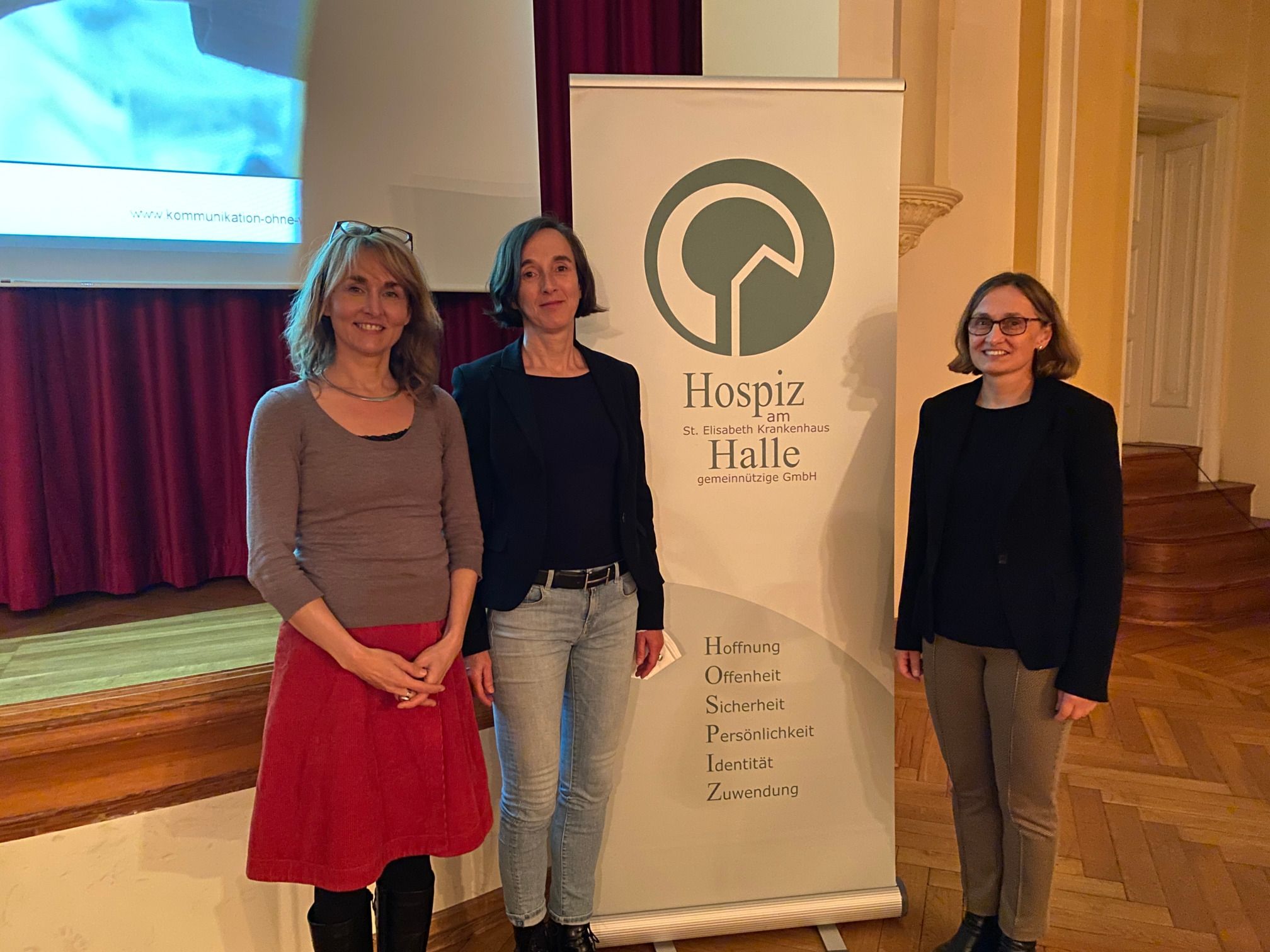 Mit Bezug auf Buber entwickelte unsere diesjährige Referentin Dr. Astrid Steinmetz ihr Konzept Kommunikation ohne Worte - KoW®. Dieses stellte sie zum deutschen Hospiztag in Halle vor. Das Hospiz am St. Elisabeth-Krankenhaus hatte, wie jedes Jahr, zu einer Veranstaltung anlässlich des deutschen Hospiztages eingeladen. Mitarbeiterinnen und Mitarbeiter des Hauses, Freunde des Hospizes und Unterstützerinnen, sowie Ehrenamtliche konnten im Schwesternsaal im ehemaligen Ordenshaus der Heiligen-Elisabeth einen Einblick in die Arbeit von Frau Dr. Steinmetz bekommen.