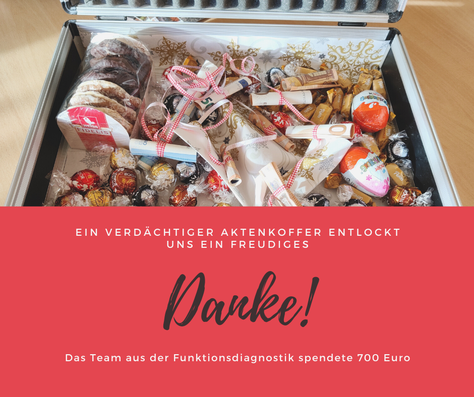 Als wir ihn öffneten, wurden wir von vielen Leckereien und 700 Euro überrascht, die das Team der Funktionsdiagnostik des Elisabeth-Krankenhauses für unseren Kinderhospizdienst gesammelt haben. Wir sind sehr gerührt, sagen Danke und wünschen allen eine wunderbare Weihnachtszeit.